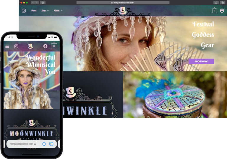 Beautiful hand crafted festival wear. An e-commerce webstore for a local fashion designer to showcase her elegant creations and expand into new markets. Visit morganadepartee.com